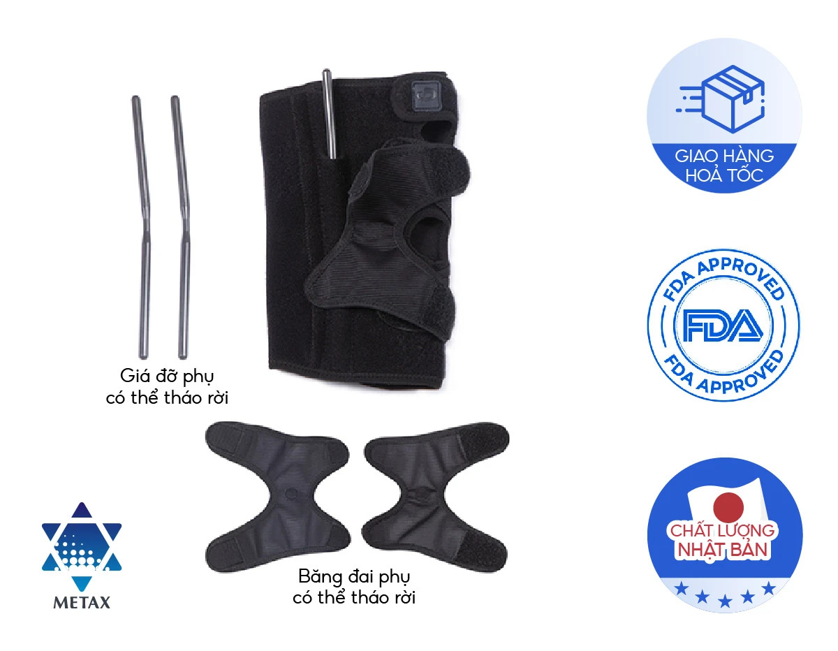 – Đai có thể tháo rời, hỗ trợ phục hồi viêm khớp, viêm gân, thấp khớp và các chấn thương khác liên quan đến đầu gối.