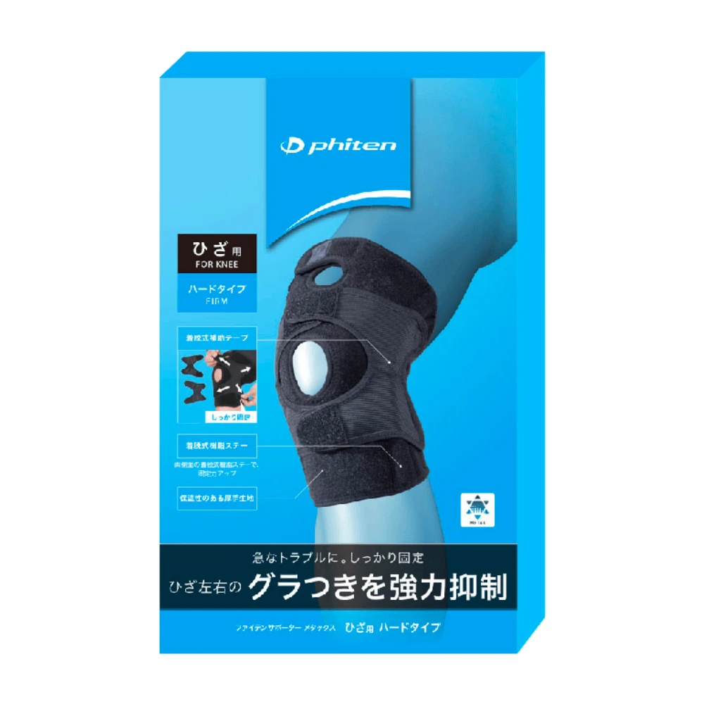 Đai định hình khớp gối (Phiten Metax Firm) được làm từ chất liệu nylon/ polyurethane. Sản phẩm có thể điều chỉnh sức căng dễ dàng nhờ vào phần đai phụ, giúp hỗ trợ phục hồi sau chấn thương đầu gối và đứt dây chằng, mang lại sự ổn định và bảo vệ tối ưu cho khớp gối.
